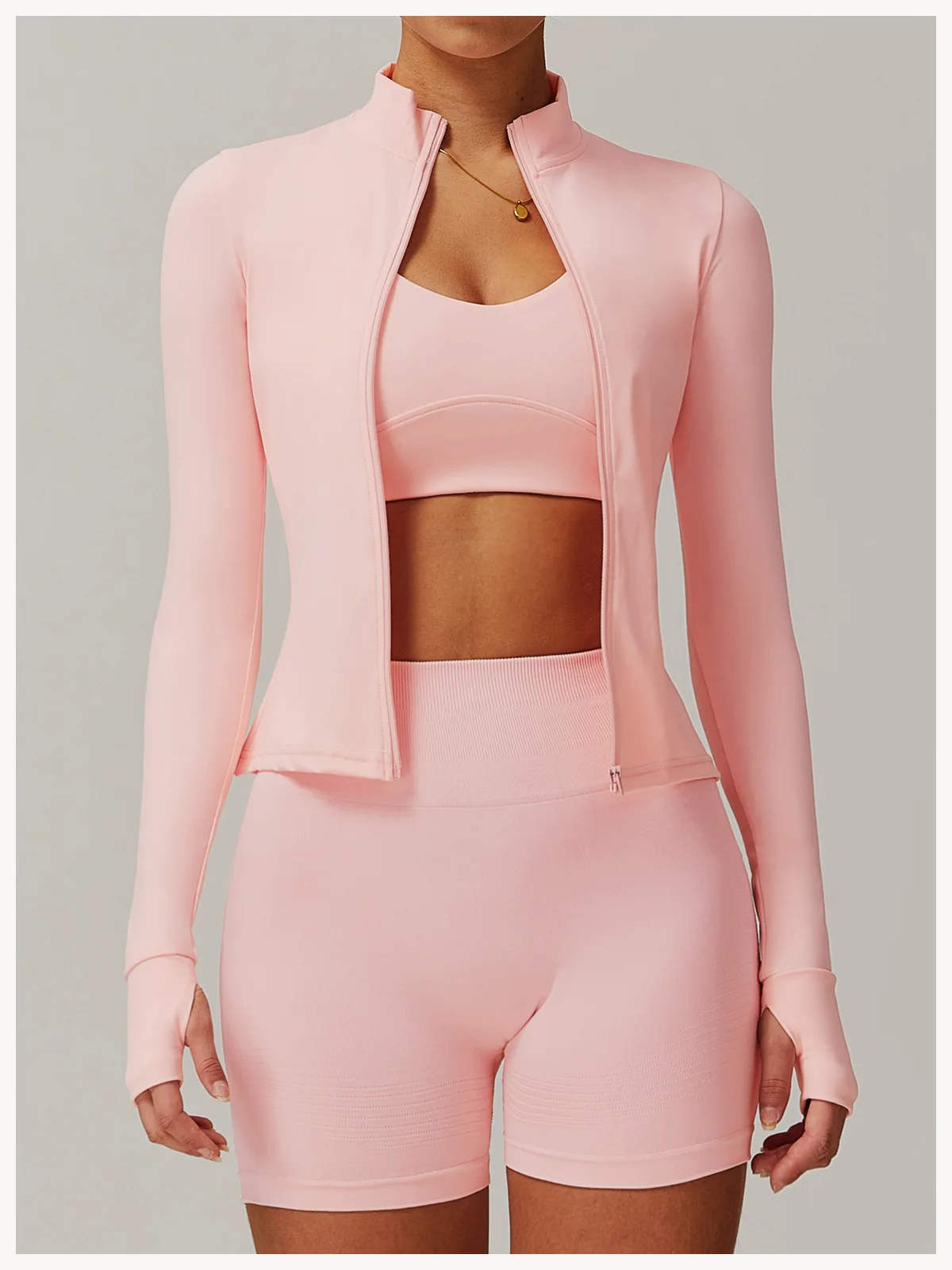 Quick Dry Nude Fitness Running Jacket Slim Fit Stand Up Sports Coat Long Sleeve Zip Gym Fitness Top Yoga Jacket Women